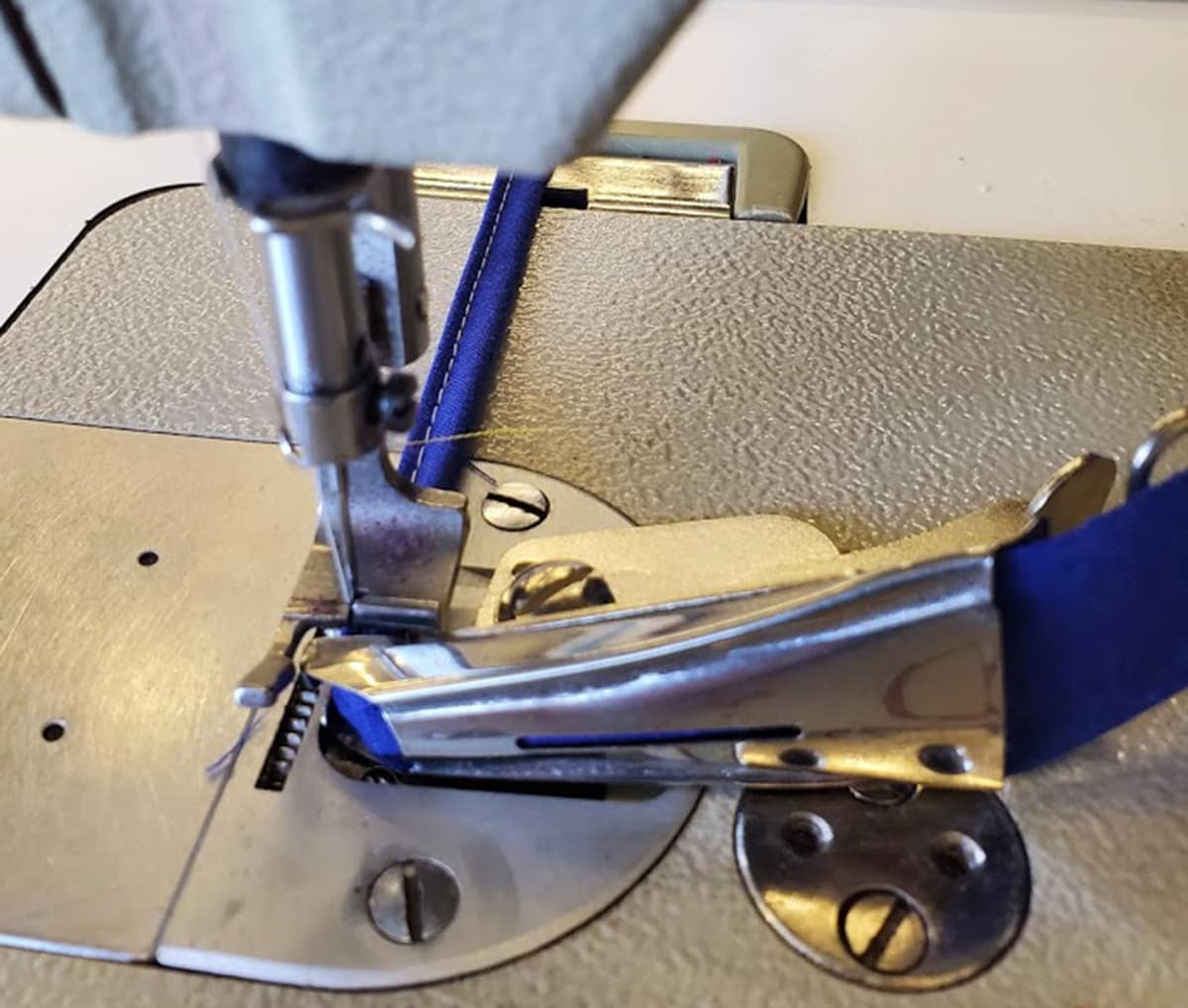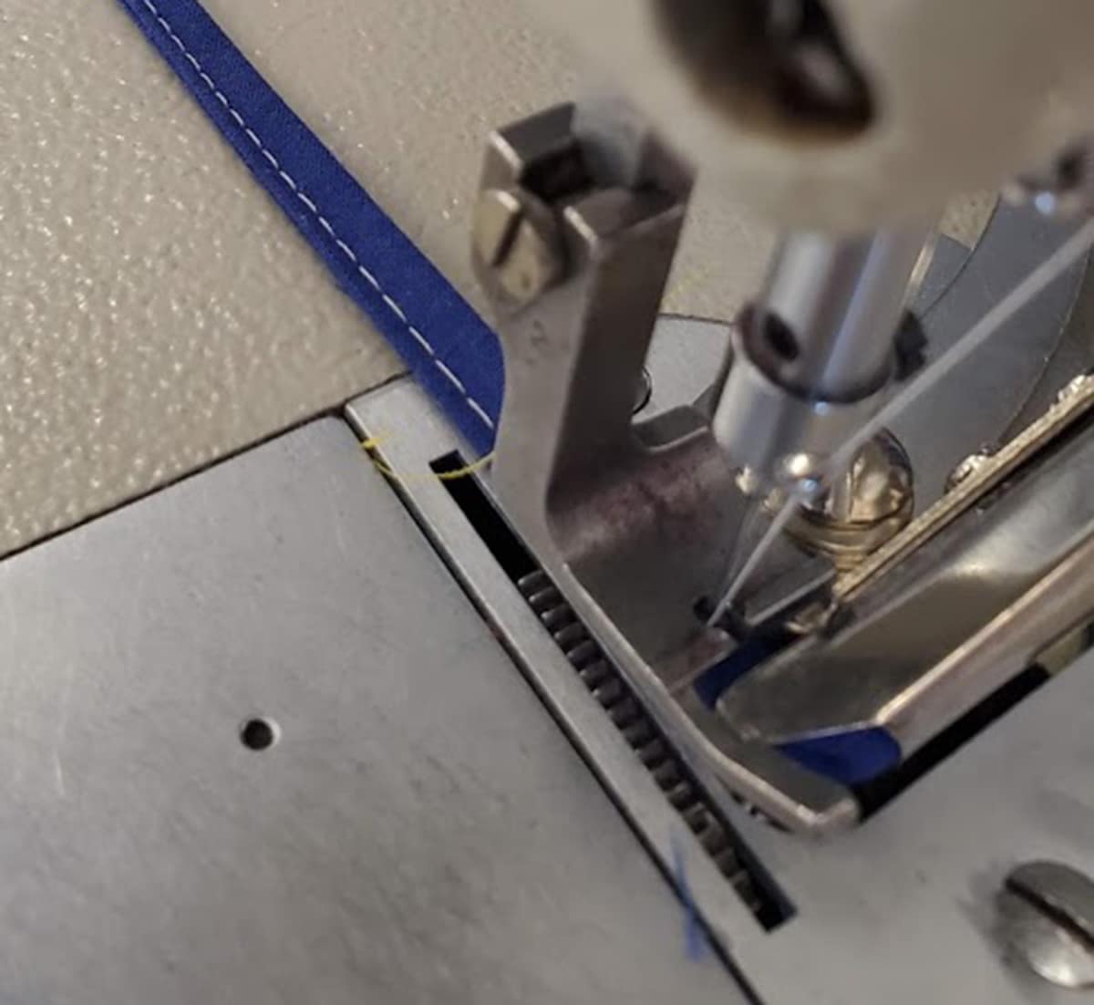We are pleased to offer our new quilt binding attachment that will fit most standard straight stitch industrial sewing machines including Singer, juki, Consew, and many more. You will see in the photos that our binder includes the standard needle plate attached to our folder. If this needle plate is the type your sewing machine has, it will fit. If not – Sorry, no luck for this wonderful tool.